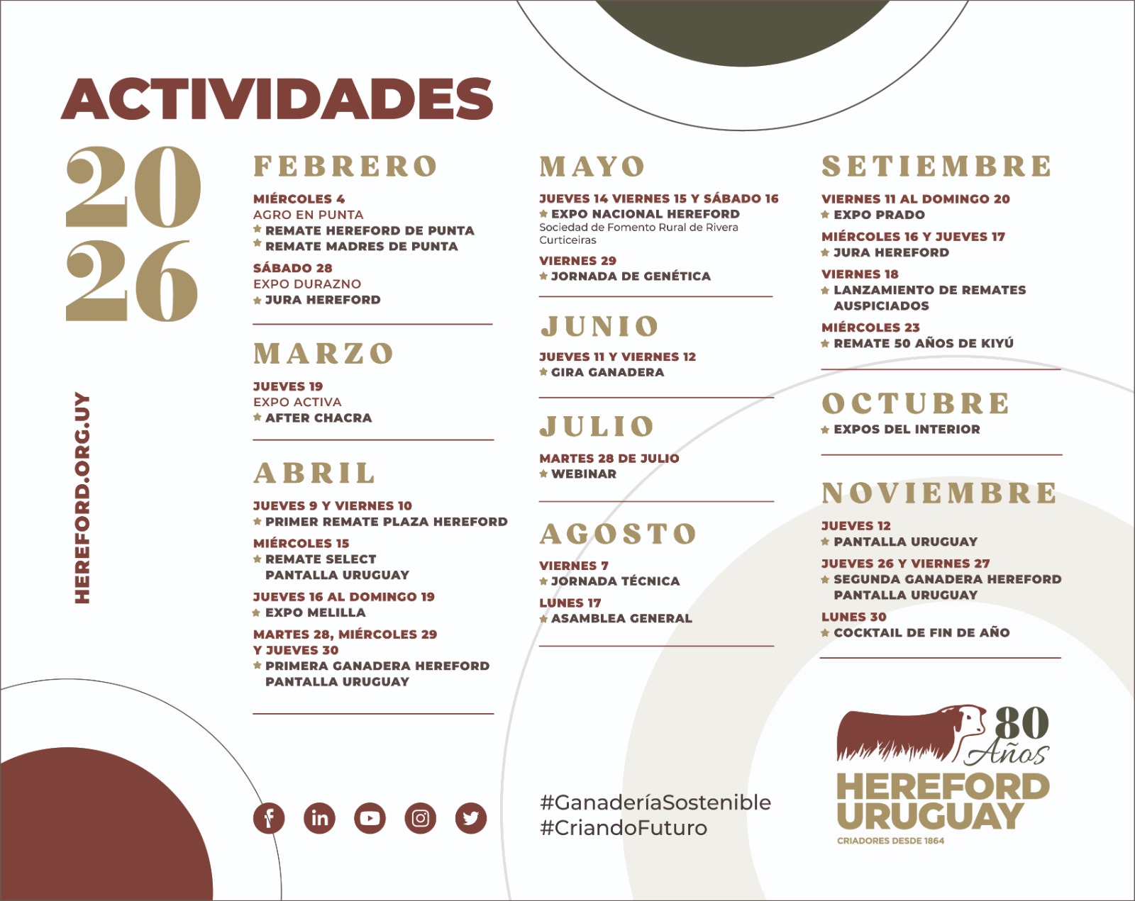 Calendario de actividades de la Sociedad Criadores de Hereford del Uruguay.